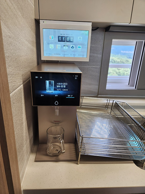 사진에서 보이는거처럼 모든 화면이 터치스크린이여서 엄청 신기했어요! 원하는 온도와 물양을 보고 누르기만하면 자동으로 맞춰줘서 사용할때 더 편한듯한 느낌이에요! 무엇보다 너무 세련되보여서 인테리어 용으로도 너무 만족스럽고 지인들이 볼때마다 신기해해서 더 뿌듯해요!