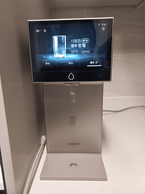 베스트다에서 정수기 상담받던중 눈에 쏙 들어온 아이콘 프로 정수기입니다.터치스크린이 있다는게 너무 신선했고,세련되고 깔금한 디자인이 인테리어용으로도 너무 맘에 들어서 바로 설치까지 완료했습니다.